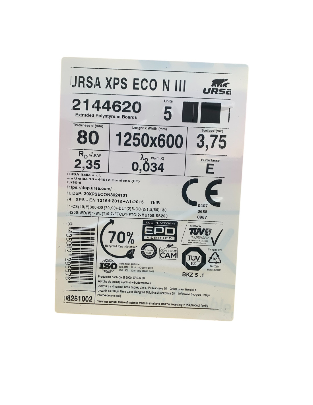 - Materiale: polistirene estruso XPS